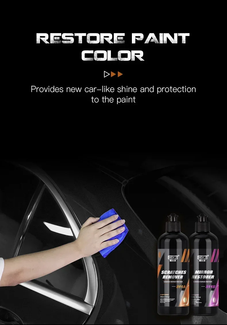 HGKJ Scratch Repair Partner S11A & S11B provides a perfect solution to solve scratch problems, while removing scratches, restore the mirror gloss effect of paint. S11A (HGKJ Scratches Remover) can be used as the first step of scratch repair, which can easily remove scratches, oxide layers, matte, etc. on the paint surface, and it is close to the mirror effect. Continuing to use S11B (Mirror Restorer) to achieve the mirror effect.