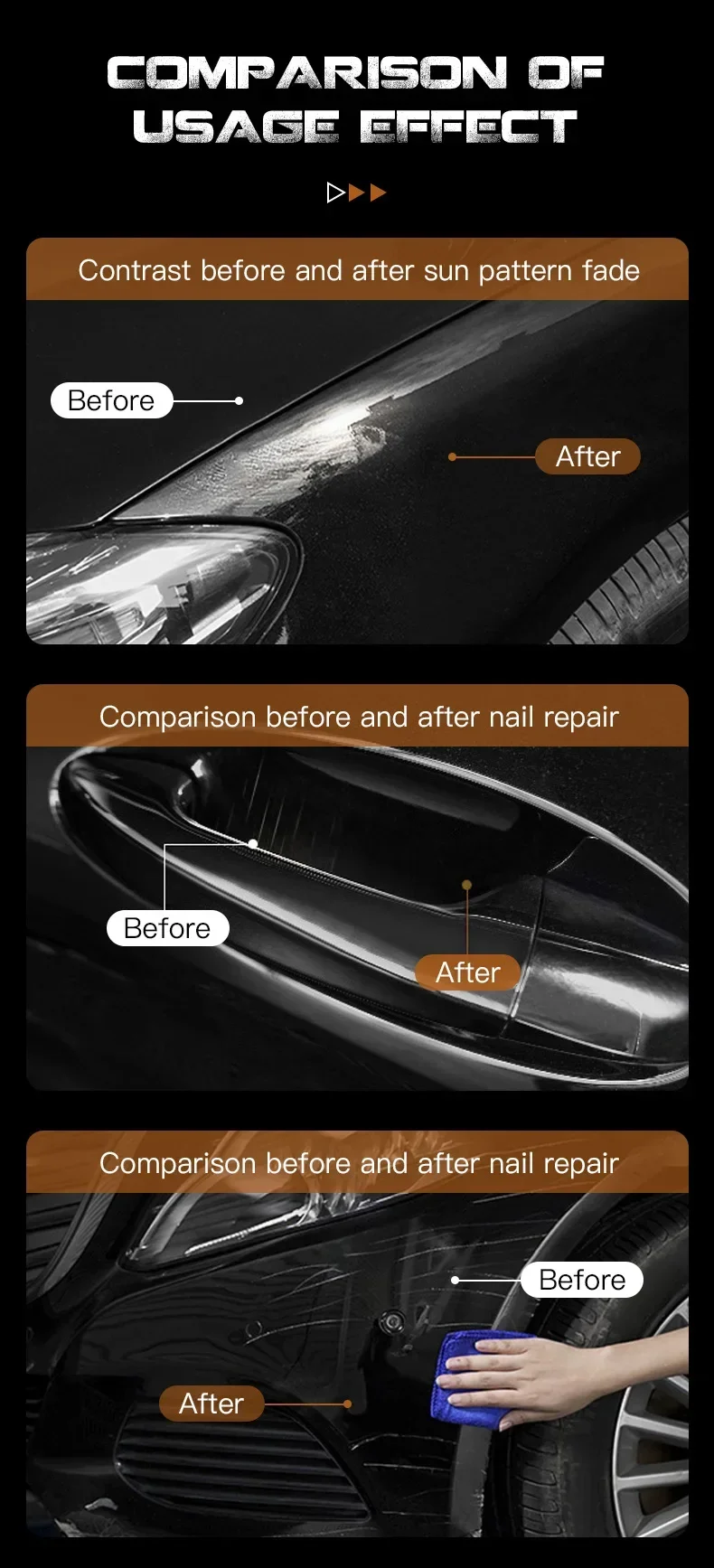 2.Pour the S11B onto a microfiber towel and polish it hard on the scratch until the paint surface returns to a mirror-like effect.