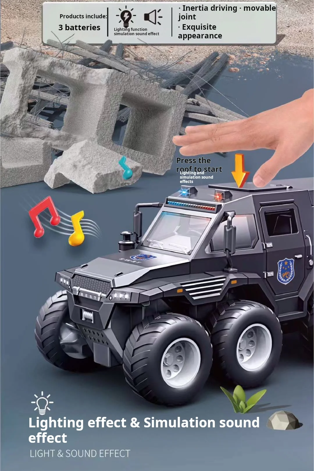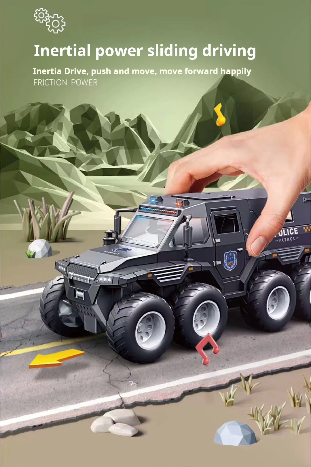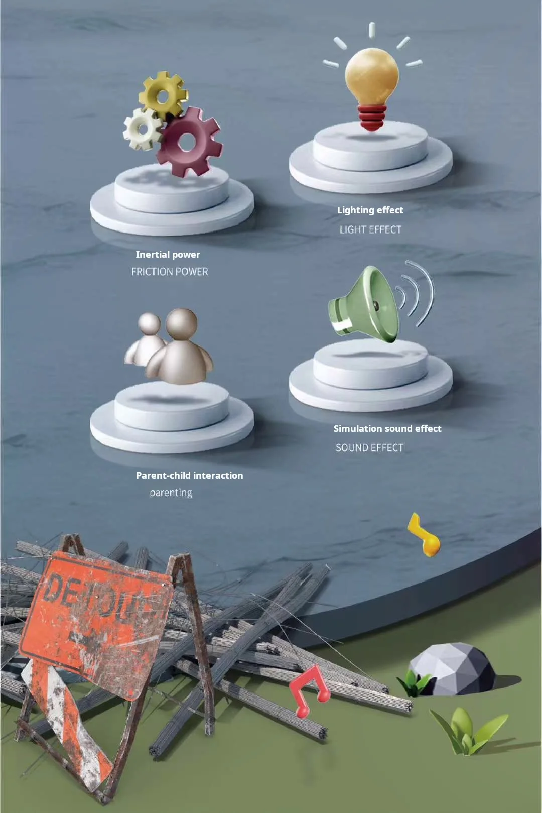 This toy car features an interactive design, engaging children with sound, light, and music to enhance their play experience.