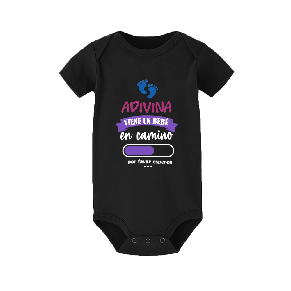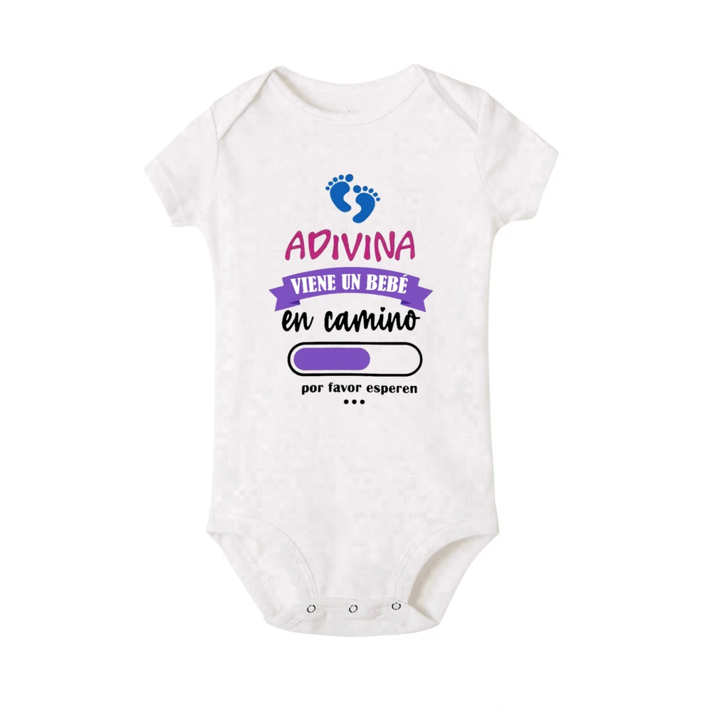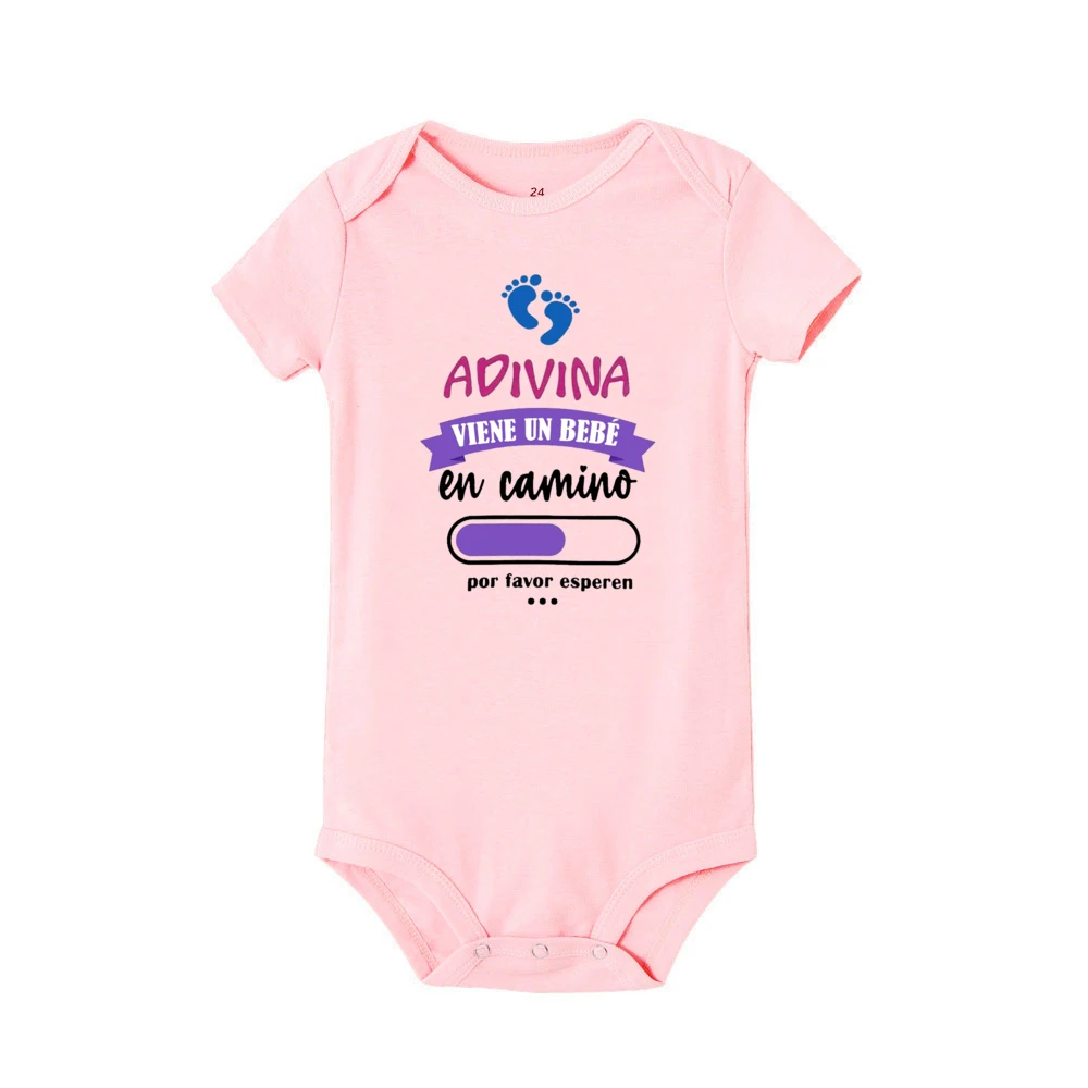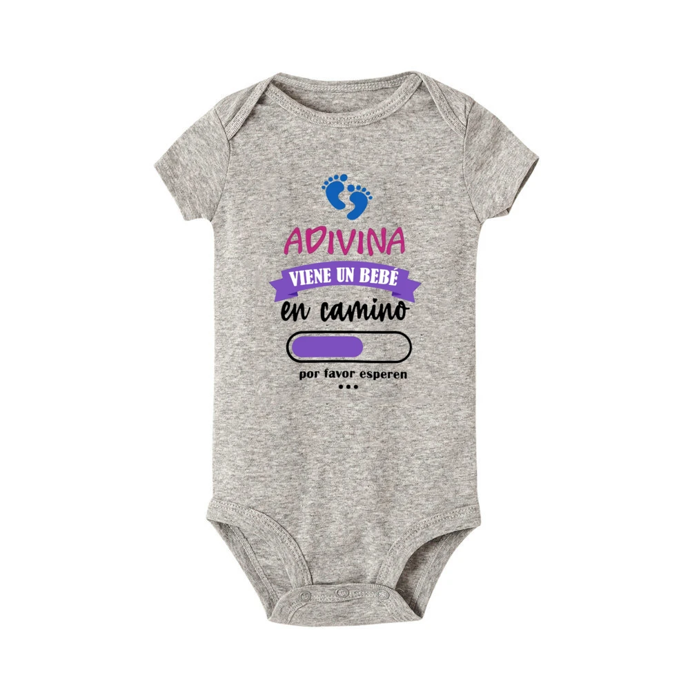 Guess There's A Baby on The Way Please Wait Printed Baby Romper Pregnancy Announcement Jumpsuit Newborn Short Sleeve Bodysuit