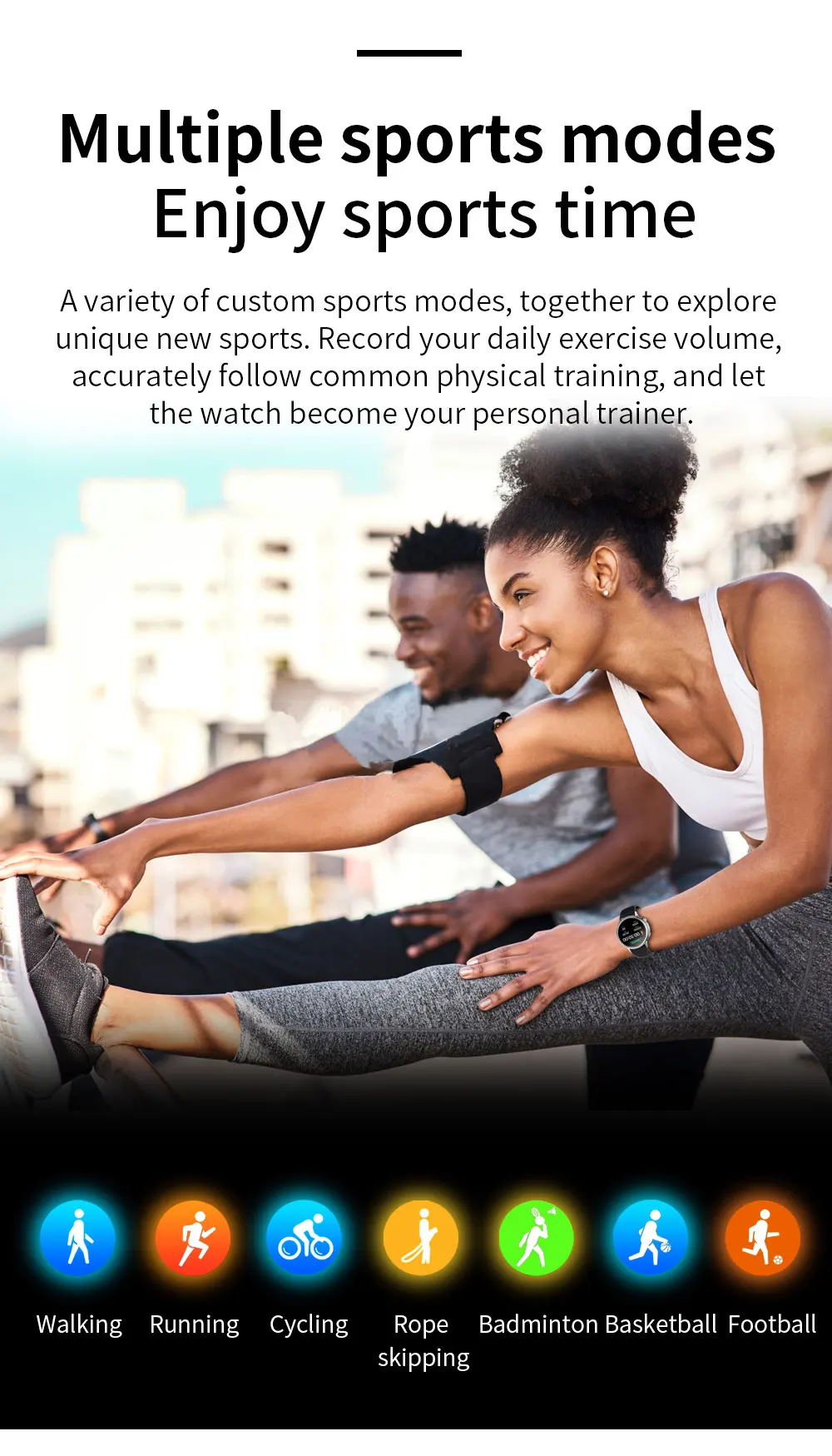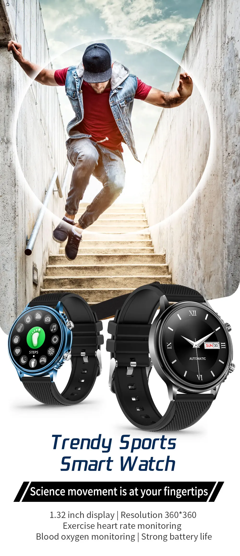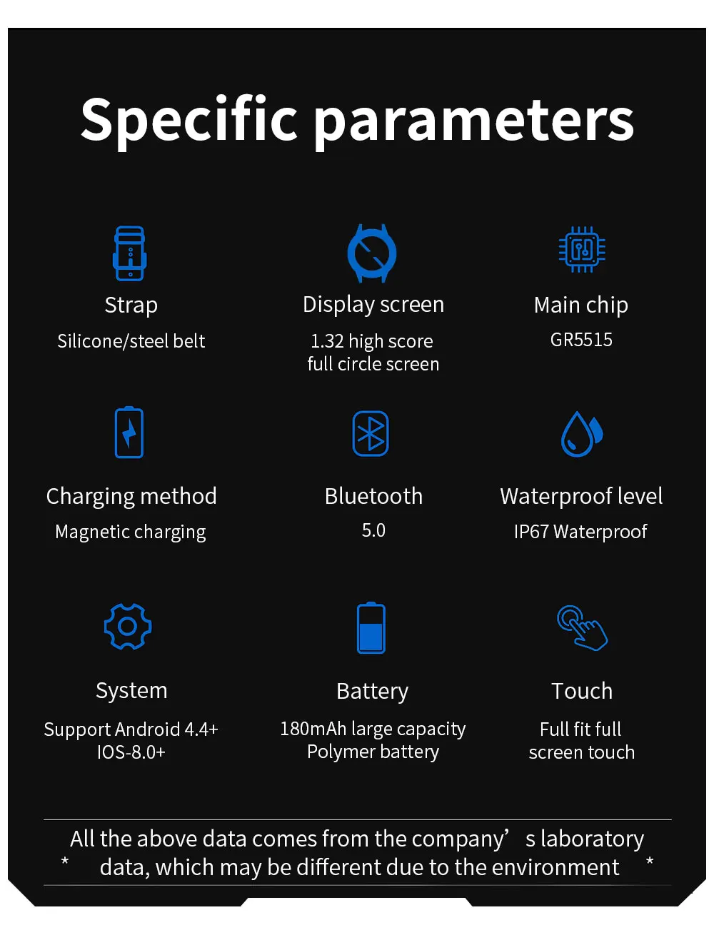 1.32 inch Full touch, call reminder push, SMS reminder push, WeChat reminder push, news reminder push, exercise record (step counting, mileage, etc.), sleep monitoring, sedentary reminder, calorie calculation, stopwatch, raise hand to brighten the screen, dynamic heart rate, blood pressure , Vibration, exercise mode, remote camera, music control, smart alarm, weather forecast, high-definition large screen, multi-dial switching, WeChat exercise, female menstrual cycle